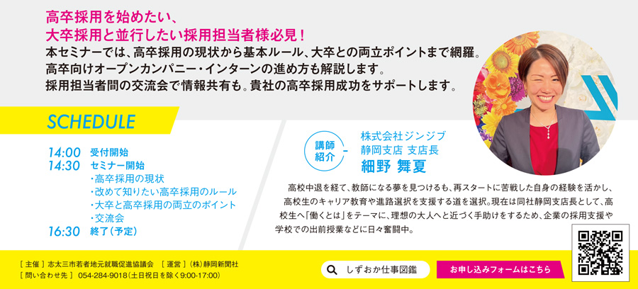 ※本セミナーへの参加企業を「しずおか仕事図鑑」にて募集しています。詳しくは以下をご確認ください。