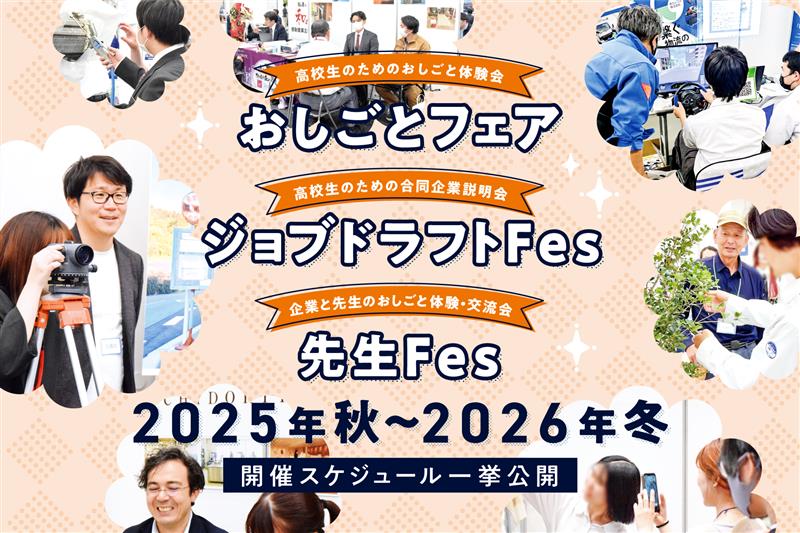 2025年秋から2026年冬にかけて、高校生向けキャリアイベントを全国開催 「ジョブドラフトFes」「おしごとフェア」「先生Fes」開催スケジュール一挙公開