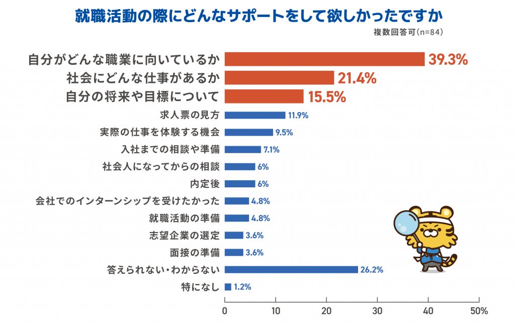 教育現場や地域の企業や支援団体などで協力し、キャリアと向き合う機会を増やすサポートが必要と言えます。