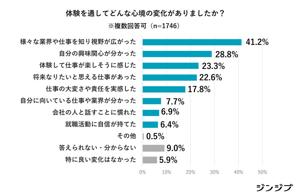 「おしごとフェア」に参加した高校生は「様々な業界を知り視野が広がった」「体験して仕事が楽しそうに感じた」「自分の興味関心が分かった」などの変化があったと回答がありました(※3)。