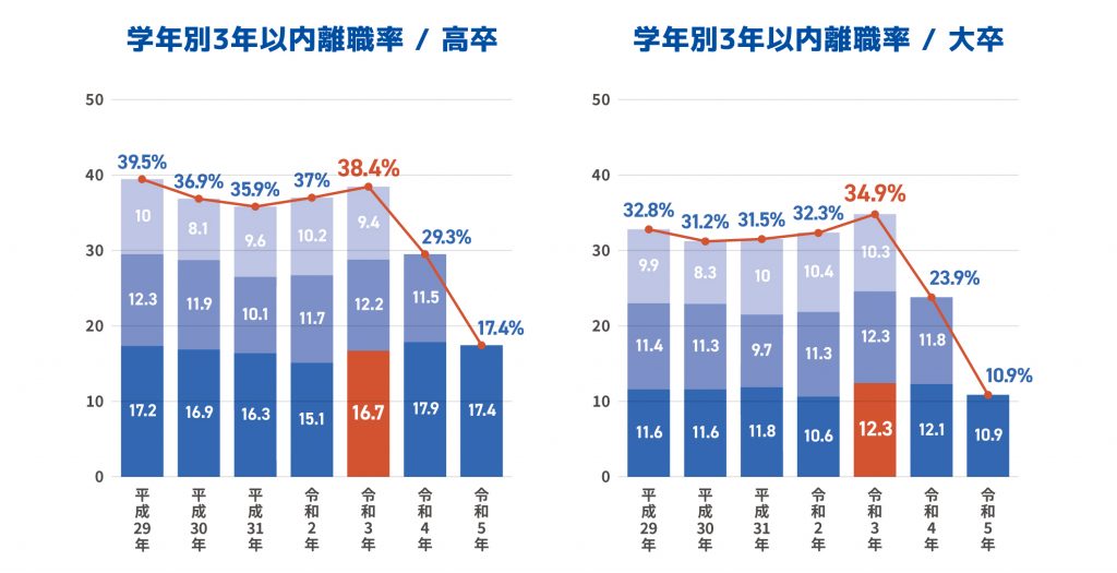 厚生労働省「新規学卒就職者の離職状況(令和3年3月卒業者) 」