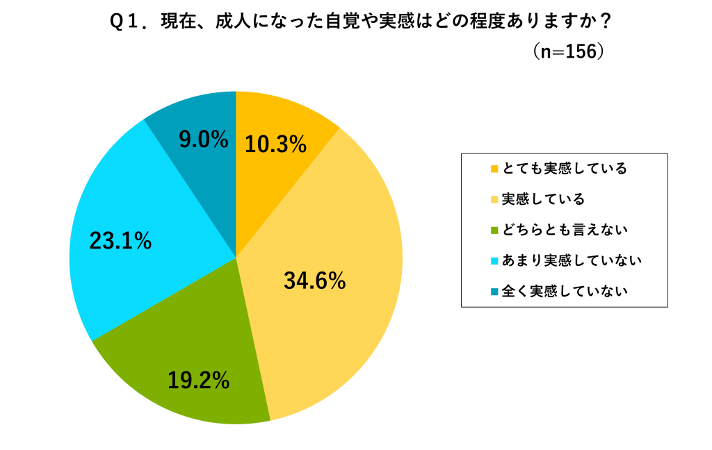 一方で、「あまり実感していない」(23.1%)と「全く実感していない」(9.0%)を合わせた『非実感派』も32.1%に上り、約3人に1人が法的な成年年齢と精神的な自覚との間にギャップを感じている実態が明らかになりました。