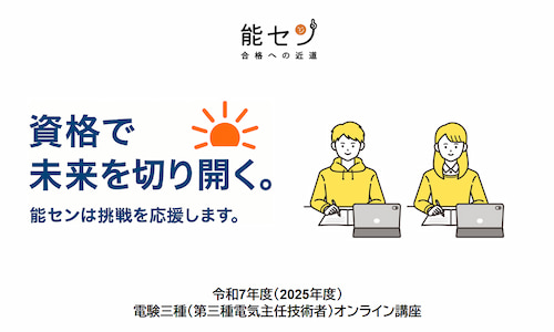 能センの電験三種(第三種電気主任技術者)対策講座は、初心者から上級者まで幅広く対応し、通学、オンライン、通信の三形態からライフスタイルに合わせて選べるのが大きな特長です。通学+オンラインのセット受講も可能で、通学での学びをオンラインで何度も復習できるため理解が深まります。