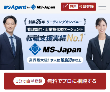 MS-Japan(MS Agent)は、管理部門・士業に特化した転職エージェントです。